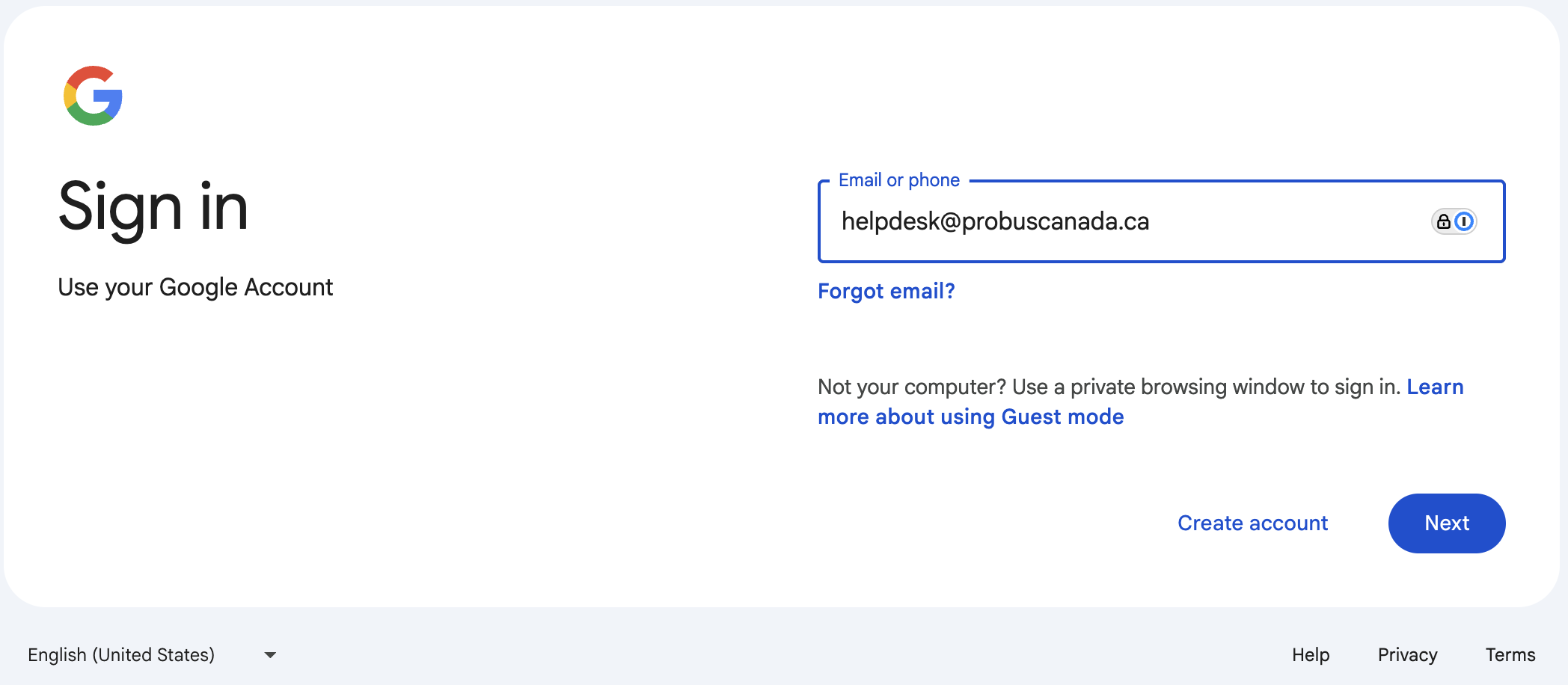 - Login as helpdesk@probuscanada.ca (password by separate channel from Ron or Martin)